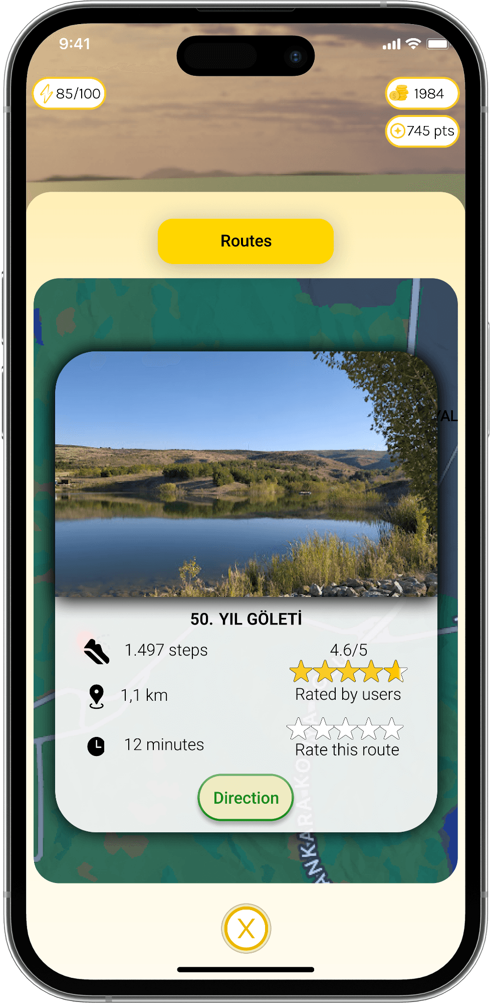 The location of the natural areas that must be seen related to METU is displayed on the route screen and when you click on the location, the route directs you to that location.
