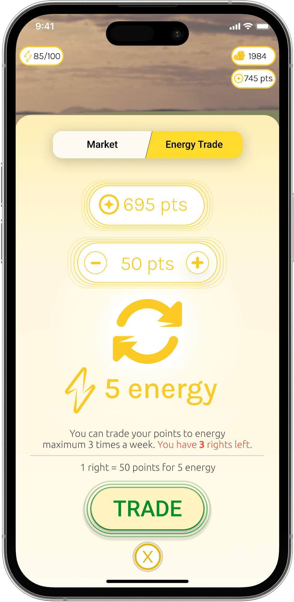 In the in-game market, users can earn coins by completing certain tasks, and with these coins they can buy clothes to personalize their avatars. On the Energy Trade page, users can exchange the points they earn for energy, which gives them the chance to earn more points.