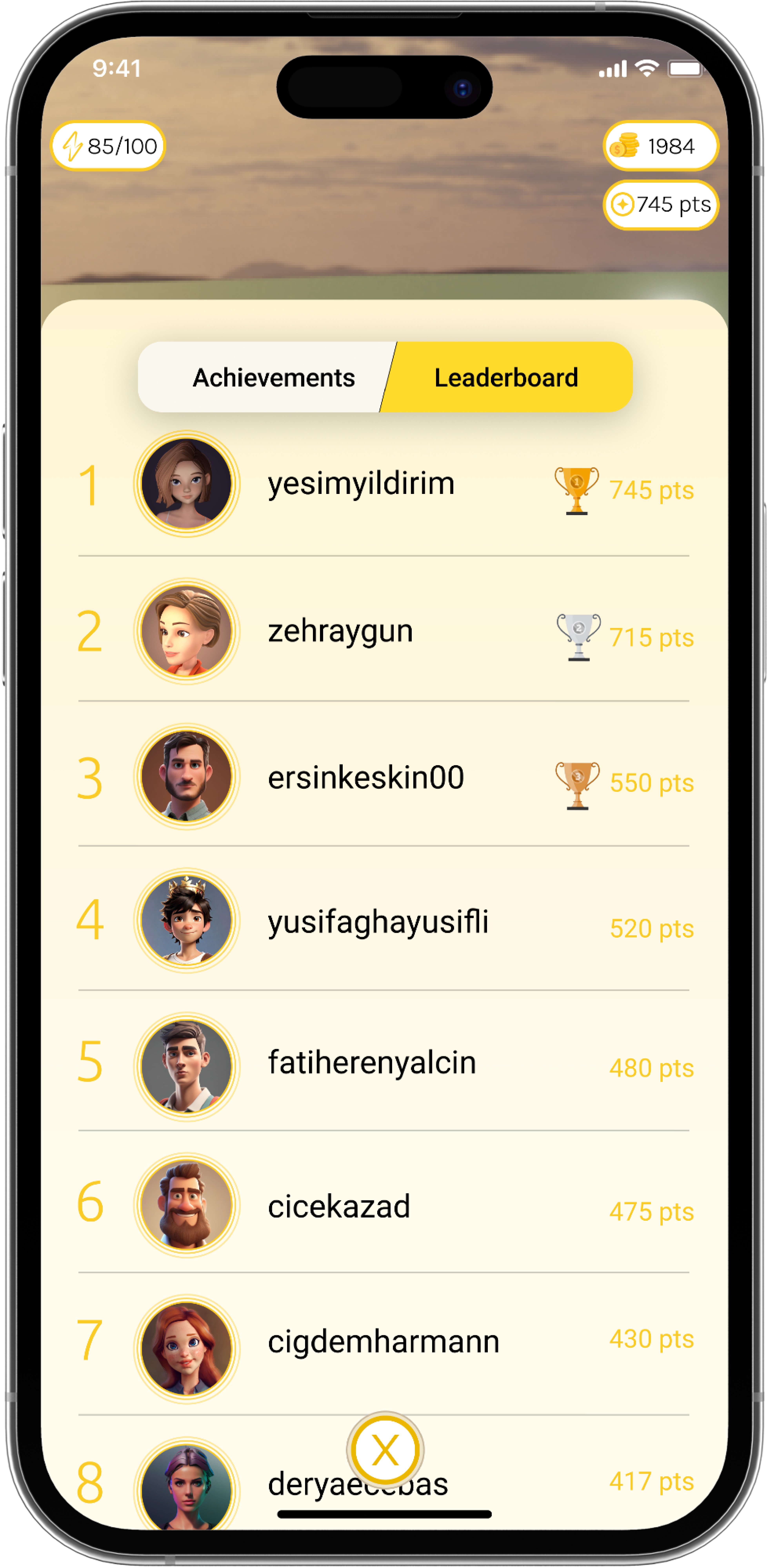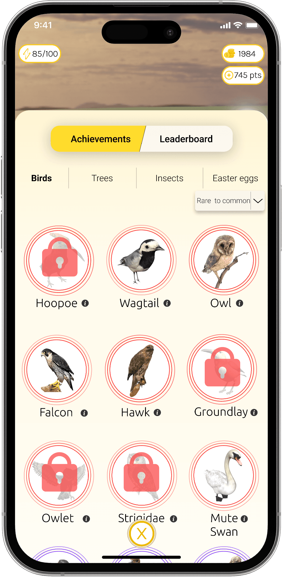 On the Achievement page, the user can view the animals they have and have not achieved and access their information. On the Leaderboard page, users can view who has caught the most animals and collected the most points monthly.