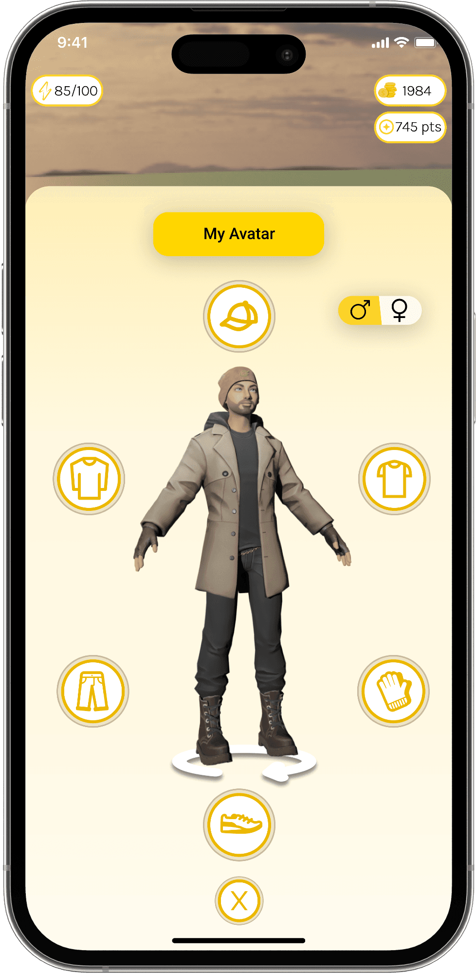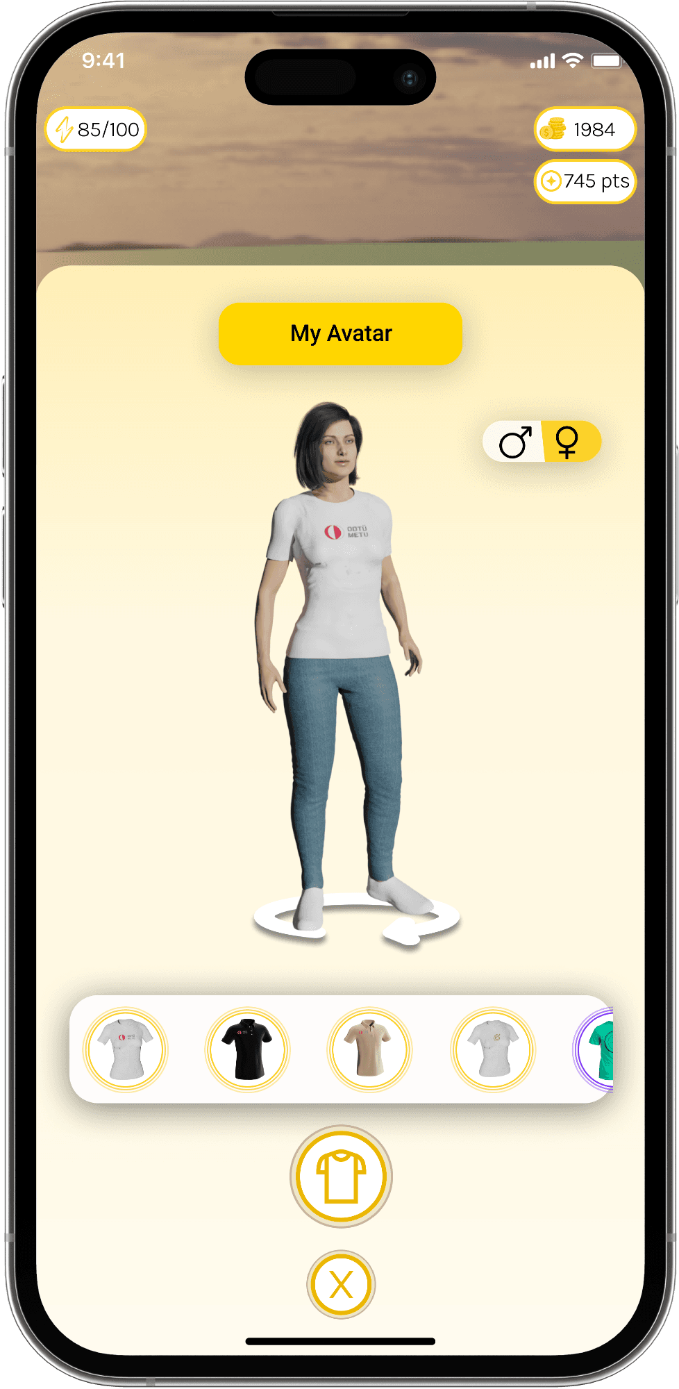 On the profile page, users can access information such as their level, the number of achievements, and which routes they have visited. On the My Avatar page, they can customize their avatars with clothes purchased from the market.